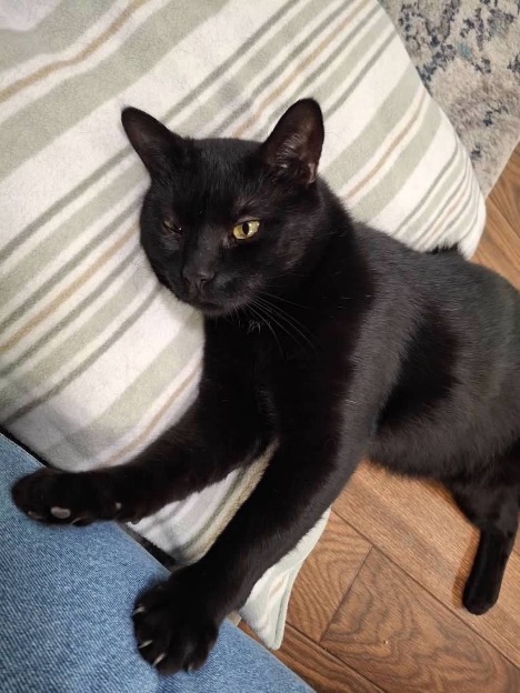 A black cat with a big presence and an even bigger wobble, he lived with Cerebellar Hypoplasia (C.H.), a neurological condition that affects balance and coordination. For him, that meant a life full of brave attempts—wobbling forward, falling backward, getting up again, and trying anyway. He was spicy yet sweet, stubborn yet playful, and determined in every way that mattered.