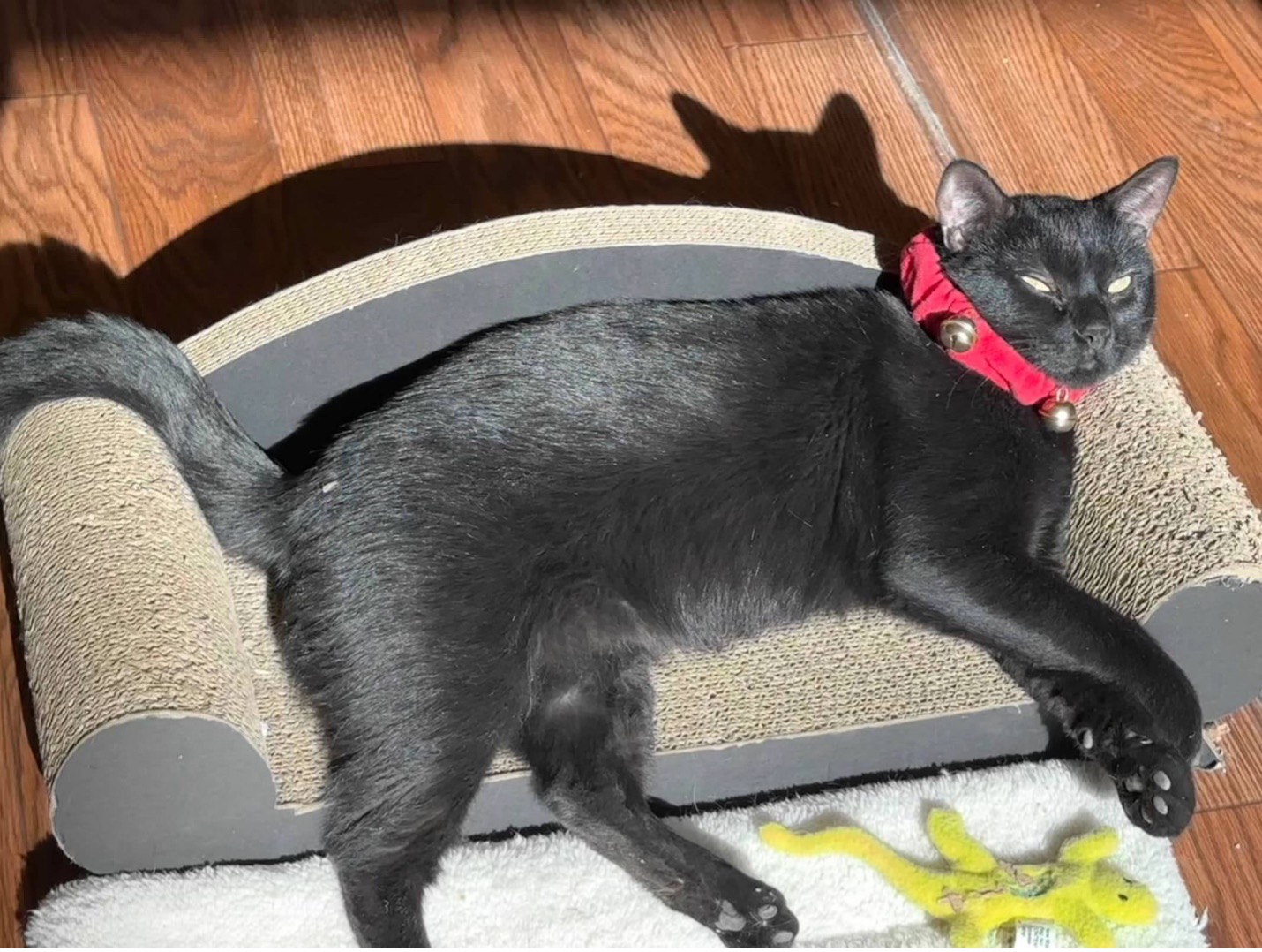 Casserole needed a very special home—one without stairs, dogs, or tall cat trees, and with people experienced enough to understand both his disability and his “spicy” moments. He was cat-selective, too, which ruled out many otherwise wonderful adopters.