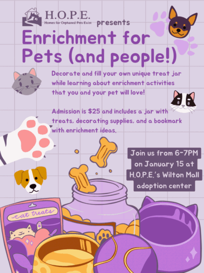 Decorate and fill your own unique treat jar while learning about enrichment activities that you and your pet will love!