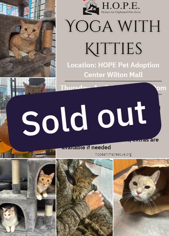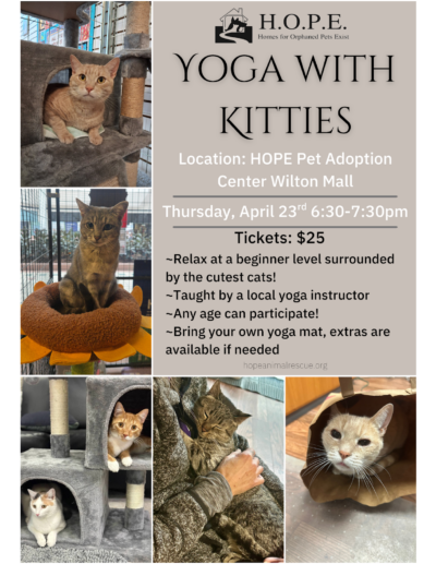 Join us for a relaxing evening of a beginner level yoga class surrounded by some of our adorable shelter cats!